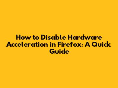 Disable Hardware Acceleration In Firefox: A Quick Guide