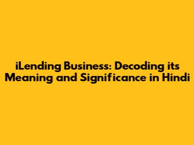 ILending Business: Meaning & Significance In Hindi