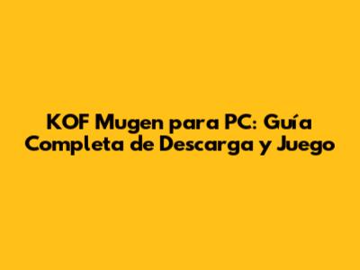 ¡Hola, gamers! ¿Listos para sumergiros en el emocionante mundo de KOF Mugen para PC? Si eres fan de los juegos de lucha y te encantan los personajes icónicos de King of Fighters, estás en el lugar correcto. En esta guía completa, te explicaré todo lo que necesitas saber para descargar, instalar y disfrutar de KOF Mugen en tu PC. Prepárense, porque esta va a ser una experiencia épica. ¡Comencemos!