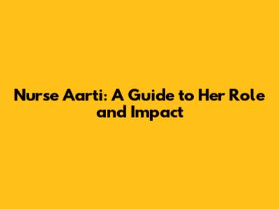 Nurse Aarti: A Guide To Her Role And Impact