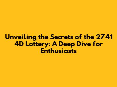 Unveiling the Secrets of the 2741 4D Lottery: A Deep Dive for Enthusiasts
