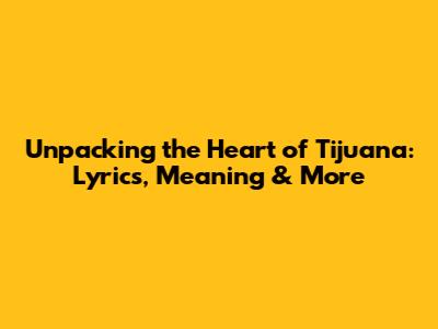 Unpacking The Heart Of Tijuana: Lyrics, Meaning & More